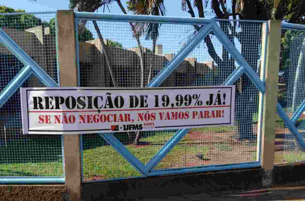 A Adufms (Associação dos Docentes da UFMS) instalou faixas referentes ao indicativo de greve nos campi de Campo Grande e do Pantanal da UFMS (Universidade Federal de Mato Grosso do Sul). No recado, a associação afirma: “se não negociar, nós vamos parar”.