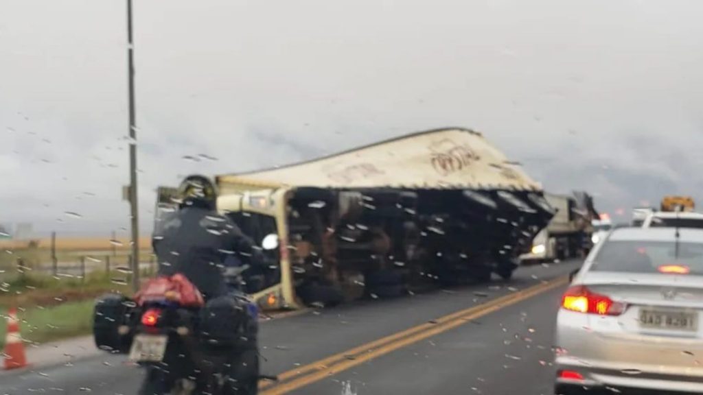 A pista da rodovia foi parcialmente interditada e o fluxo controlado pela concessionária responsável.