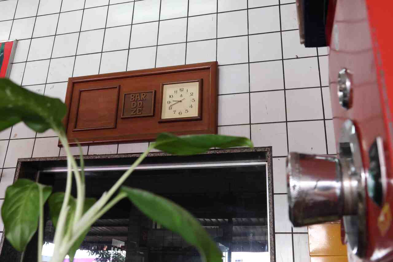 Ainda resistem nas paredes os ladrilhos brancos, os pôsteres de propagandas de cerveja, uma cruz e um relógio de madeira. No balcão, há o querido copo americano, e no calçadão, os engraxates e as mesas e cadeiras vermelhas de plástico, reforçando a assinatura do “boteco raiz”.