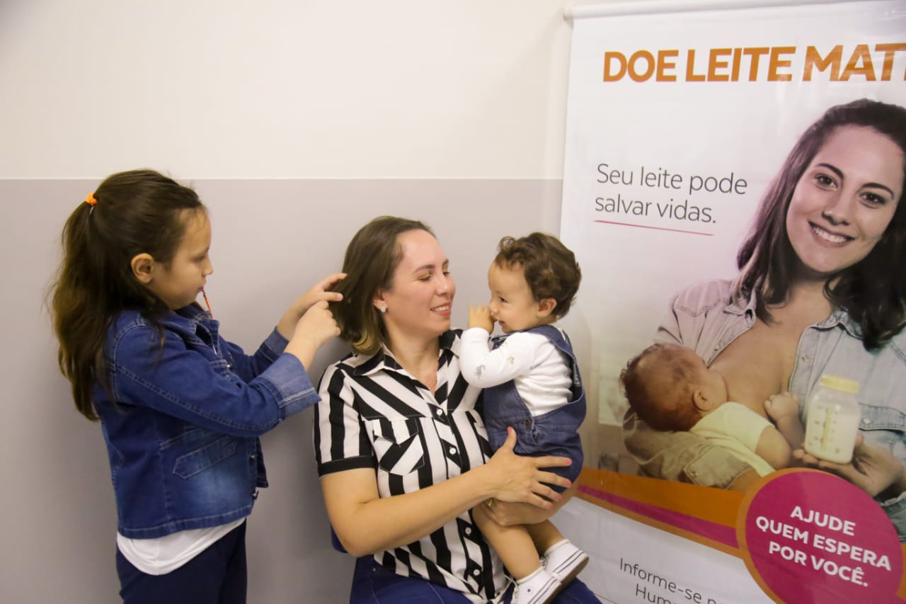 Mulheres tiram momentos da rotina para doar o bem vital produzido diariamente pela mãe. Kelly Garcia Melo Costa, nutricionista, fez a primeira doação com a gestação da primogênita, Maria. Depois de oito anos retorna ao banco de leite para doar com a chegada de João Miguel, completando um ano. A iniciativa surgiu em casa, observando a quantidade de leite da mãe.