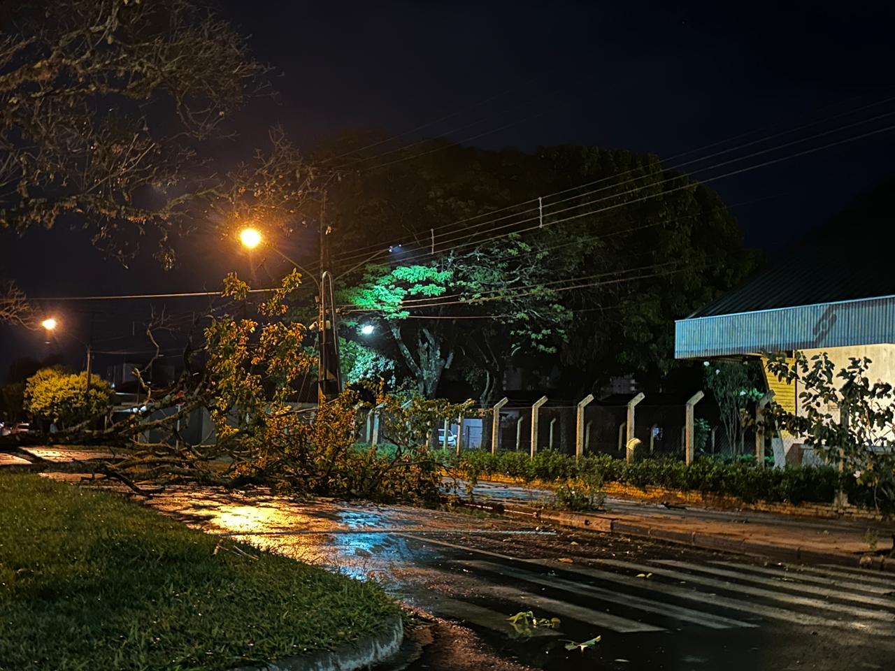 Devido aos fortes ventos, houve quedas de árvores e de parte da rede de energia em alguns locais. A Defesa Civil trabalha neste momento atendendo moradores. Informação é a de que também houve pontos de alagamentos.
