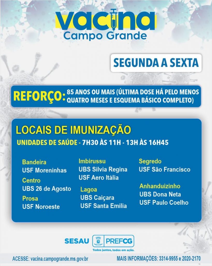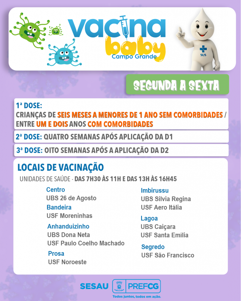 Entre as cidades, diversas estratégias foram adotadas para atender os moradores. Em Paraíso das Águas, o Dia D será na UBS Aristóteles Garcia Vida, das 7 às 11 horas e das 13 às 17 horas. Além da UBS, a equipe da saúde vai aplicar as doses nos postos de vacinação volante em repartições públicas, escolas e comércio da cidade durante todo o mês de fevereiro. É importante a apresentação da caderneta de vacinação e um documento oficial com foto.