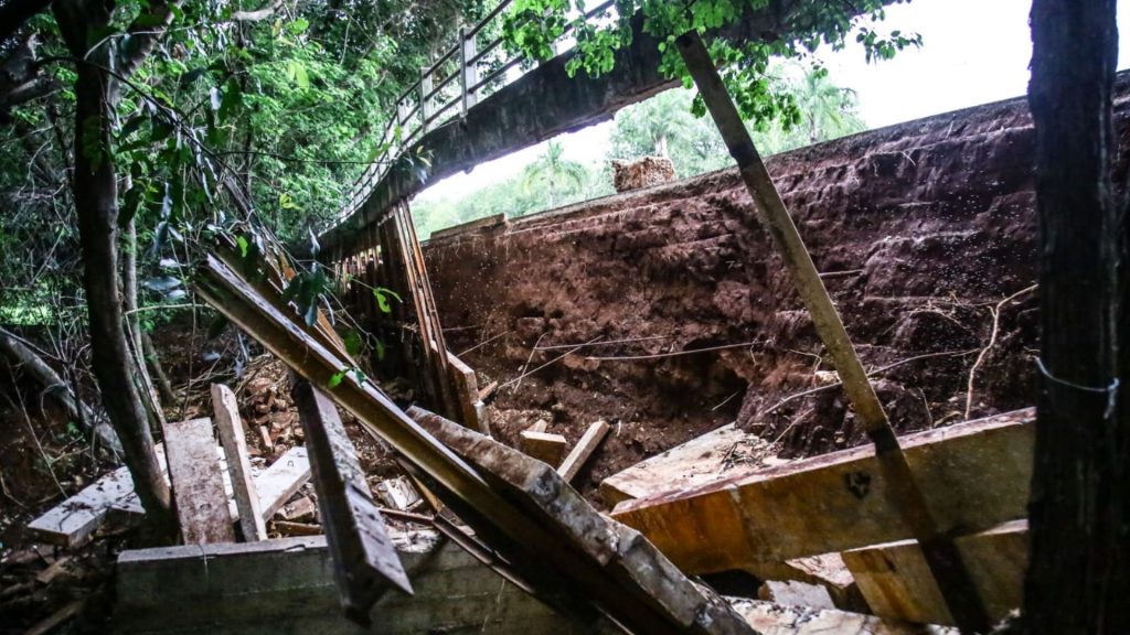 Além da passarela lateral, parte do asfalto próximo ao local rachou com a força da água da chuva. A prefeitura ainda deve consultar a UFMS e órgãos ambientais para elaboração do projeto de reconstrução, devido à área de preservação.
