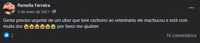 Uma rápida pesquisa em grupos de Facebook mostra inúmeros clientes em busca de formas para transportar seus animais. “Alguém conhece algum Uber que deixa levar cachorro dentro?”, questionou uma internauta.