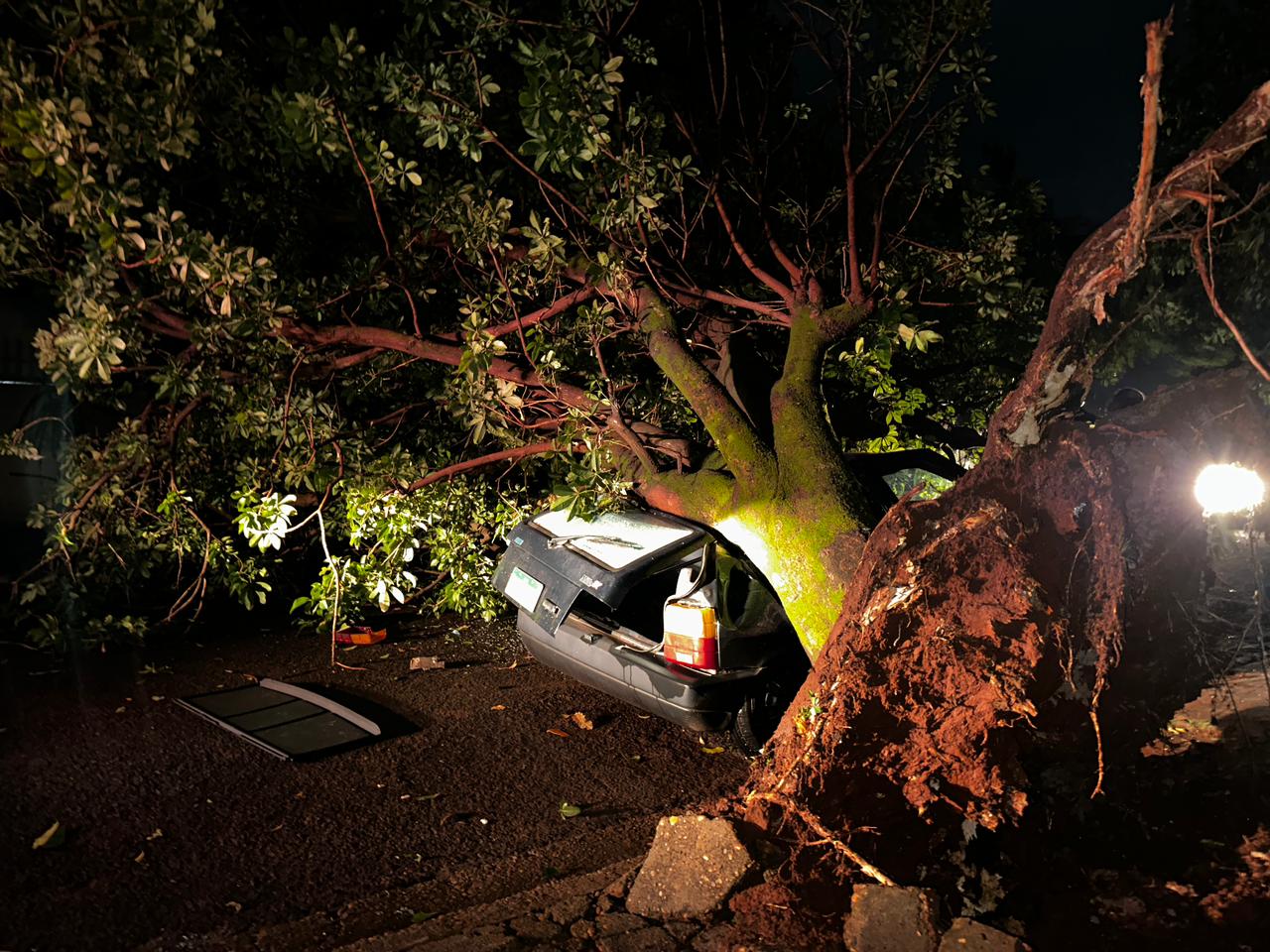 Em outro ponto da cidade, uma árvore caiu sobre um veículo Fiat Uno, no cruzamento da Rua Cornélia Cerzósimo de Souza com a Rua Ponta Porã. Não havia ninguém no veículo e nenhuma pessoa ficou ferida devido à queda da árvore. O carro estava com trabalhadores que faziam uma montagem em uma farmácia que fica nas proximidades.