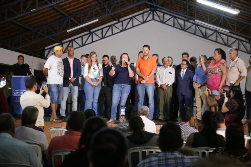A prefeitura de Campo Grande realizou, na noite desta quinta-feira (09), solenidade que autoriza o município a permutar área pública com a área da comunidade da Homex. A prefeita Adriane Lopes (Patriota), sancionou o Projeto de Lei 10.885/2023, que autoriza a permuta de área pública com a área da comunidade da Homex, no evento que ocorreu na Escola Municipal Professora Maria Regina de Vasconcelos Galvão.