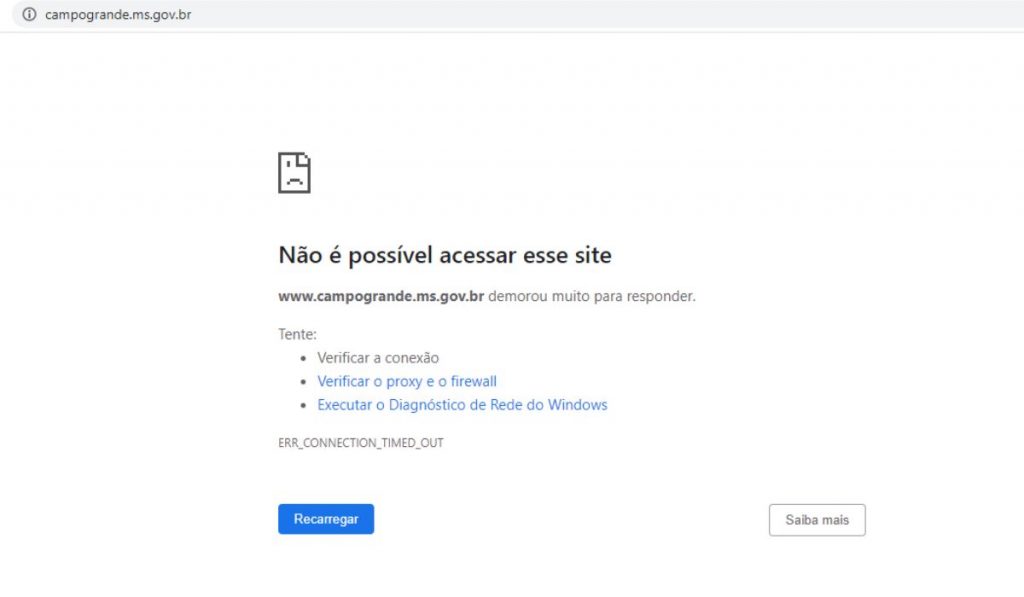 Na tarde desta terça-feira (10), o a página www.campogrande.ms.gov.br/iptu/ assim como a principal do poder executivo. Morador relatou que a página está saindo do ar desde a segunda-feira (9) e outro disse que após muita insistência na página conseguiu acessar.
