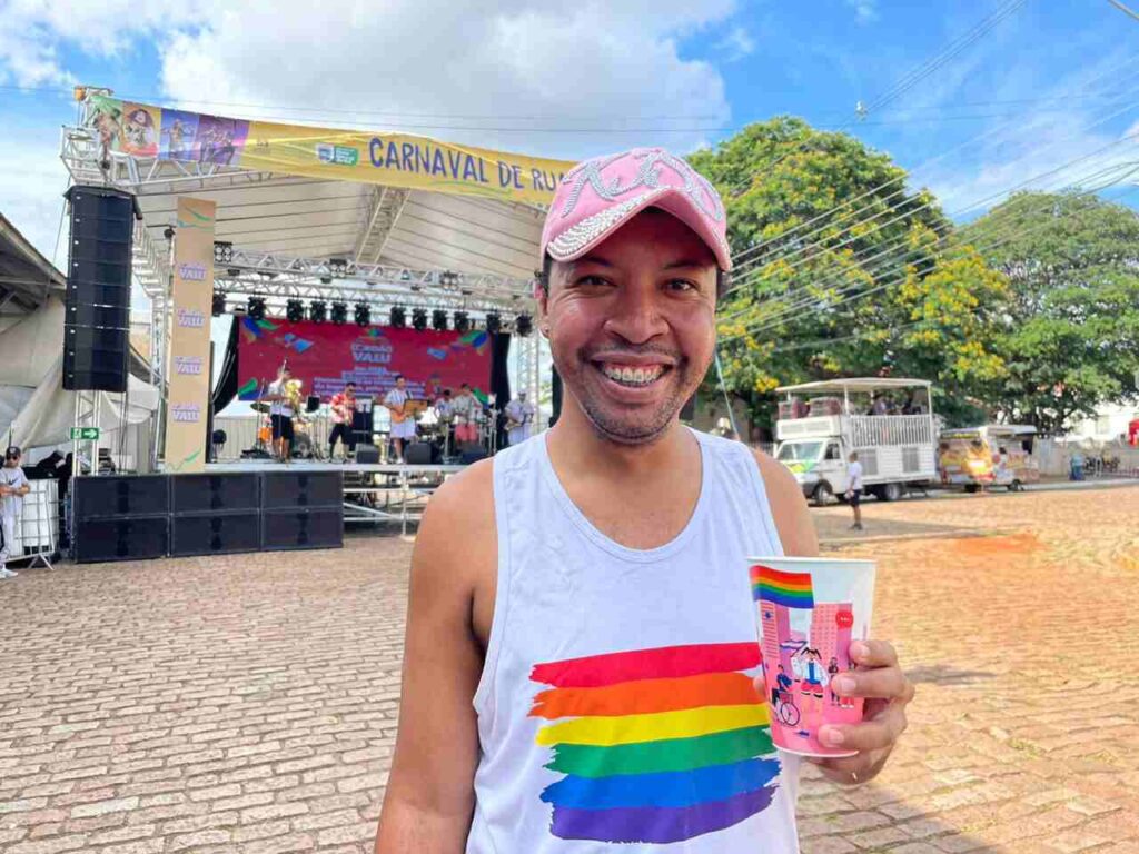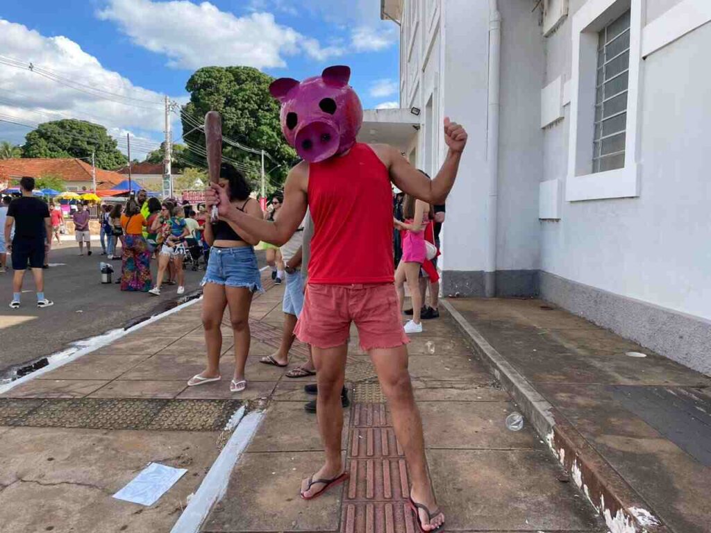 O palco está montado próximo à Feira Central, entre a Avenida Calógeras e a Rua General Melo. Por isso, muitos foliões chegaram cedo para garantir lugar perto da música. O Rafael Siguiura, de 38 anos, afirma que nunca perdeu um Carnaval e decidiu estilizar o seu boné por conta própria em 2023.