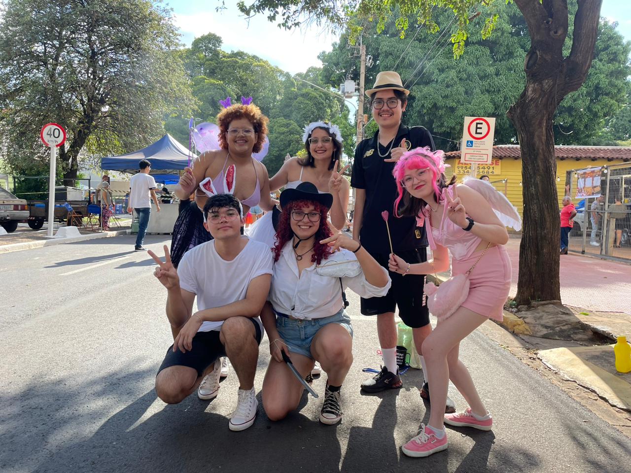 Os jovens também aproveitaram a oportunidade para comparecer à folia. A estudante Maria Eduarda Gurgel, de 14 anos, estava acompanhada dos pais e da amiga para celebrar a data. Ela explica que é a primeira vez que está no Carnaval, mas que adora festa.