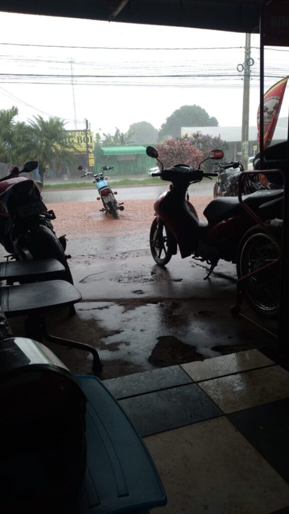 A quantidade de água impede a entrada dos clientes, o que consequentemente faz perder vendas em dias de chuva. “Geralmente vem lá do fundo [do bairro] nas ruas de terra e começa a descer a água acumulando barro aqui na frente”, ele relata.