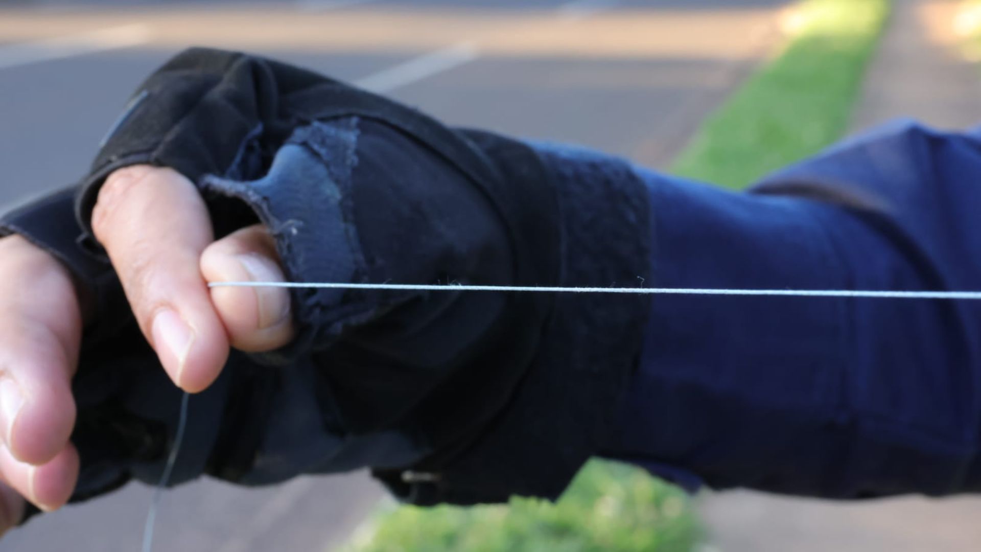 Equipe da Ronda Escolar da GCM (Guarda Civil Metropolitana) flagrou uma linha de pipa atravessando a Avenida Thryson de Almeida, no Bairro Guanandi II, em Campo Grande, na tarde desta sexta-feira (23).