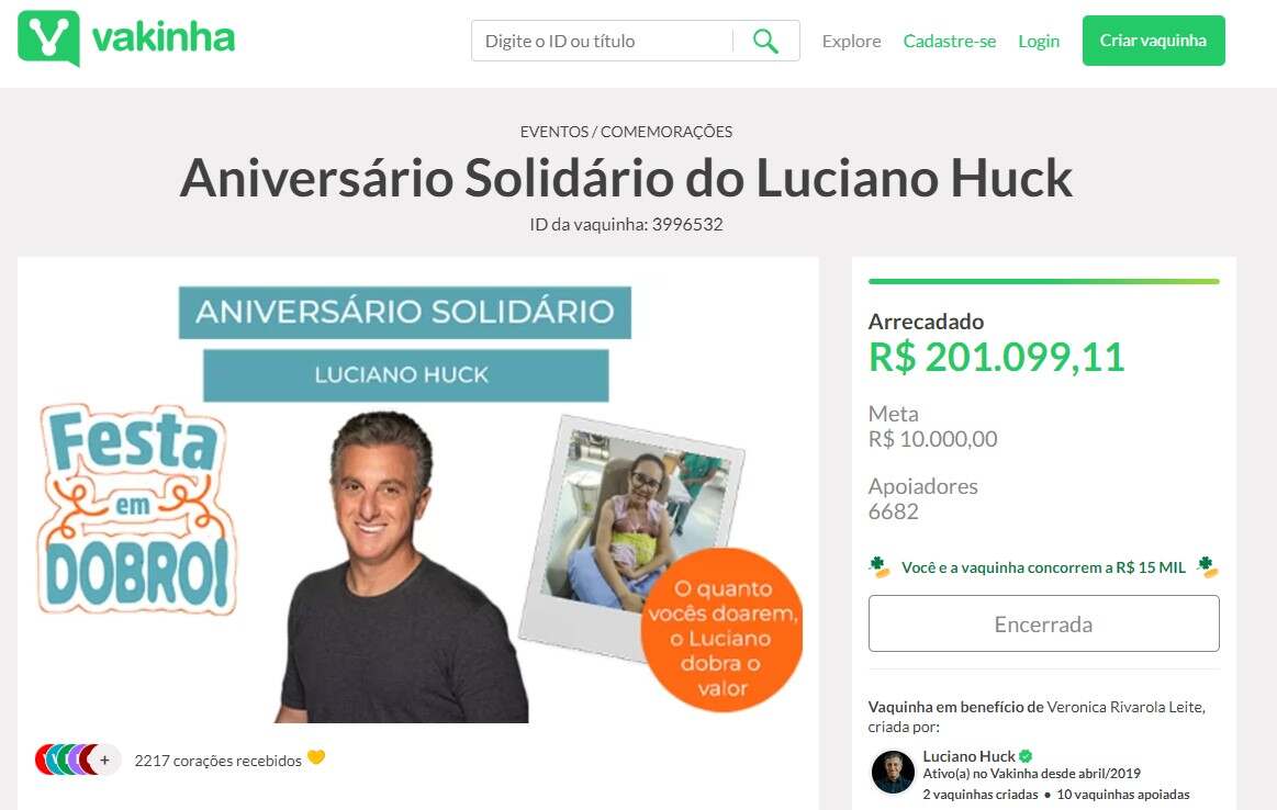 No site “Vakinha” consta que a arrecadação foi encerrada em R$ 201.099,11 e Luciano Huck prometeu dobrar o valor das doações. Assim, a jardinense deve receber cerca de R$ 400 mil.