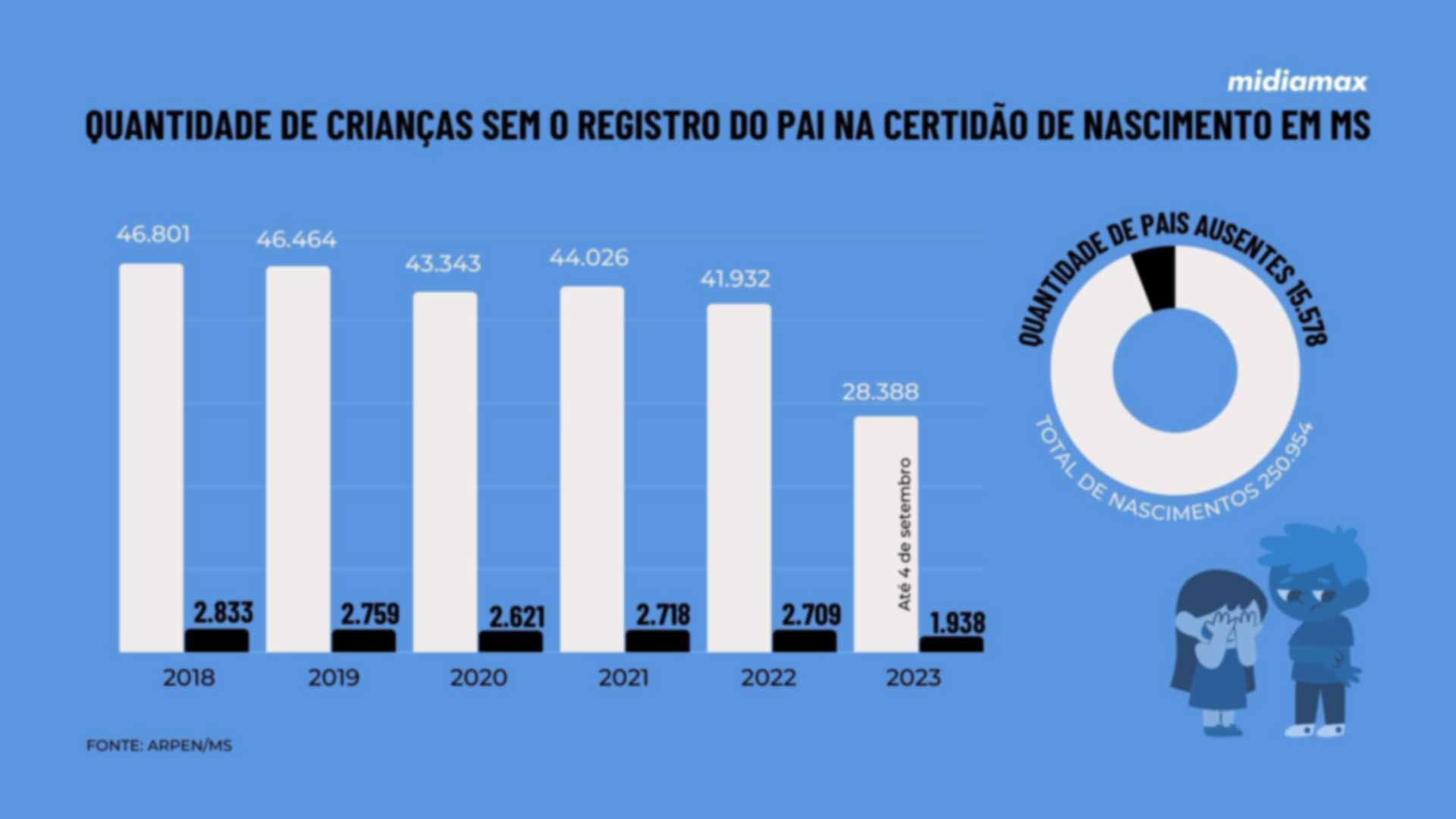 O levantamento também indica que, nos últimos cinco anos, em média 6% das certidões de nascimento de Mato Grosso do Sul foram emitidas sem o nome do pai.