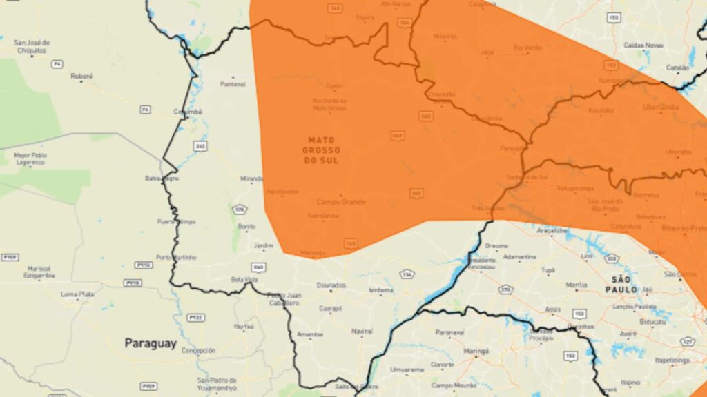 O Inmet (Instituto Nacional de Meteorologia) emitiu alerta de chuvas intensas na manhã deste domingo (19) para maior parte de Mato Grosso do Sul. A meteorologia indica grau de perigo com risco de alagamento para 39 cidades do centro-norte e Bolsão do Estado.