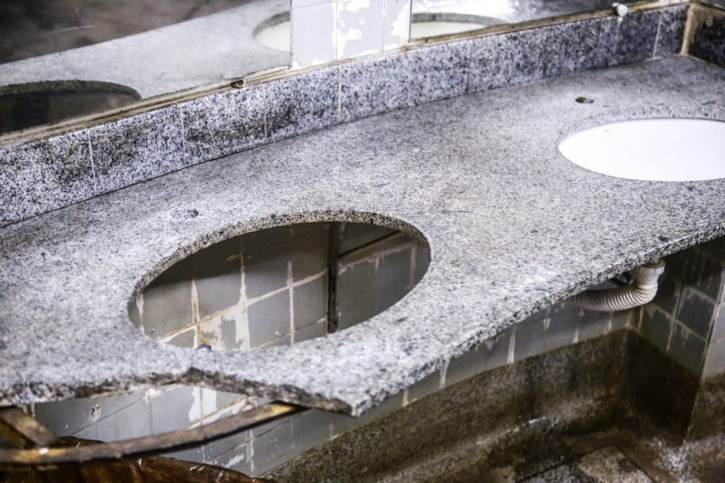 Perto dali, na Praça Ary Coelho, danos provocados pelo tempo se juntam às ações de criminosos. No banheiro, por exemplo, pias quebradas e vasos sanitários com válvula danificada compõem o cenário.