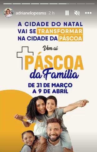 “A Cidade do Natal vai se transformar na Cidade da Páscoa. Vem aí Páscoa da Família”, diz publicação. A data temática será a primeira do ano a dar nova função ao espaço, inutilizado nos altos da Avenida Afonso Pena desde 15 de janeiro.
