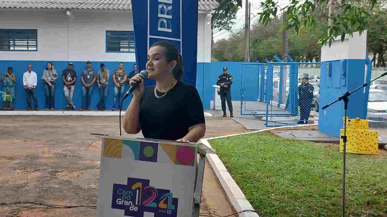 A prefeita de Campo Grande, Adriane Lopes (PP), participou da entrega de revitalização da Cesan (Central de Segurança Alimentar e Nutricional) e do Cras (Centro de Referência da Assistência Social Carlinda Pereira Contar) Nossa Senhora Aparecida.