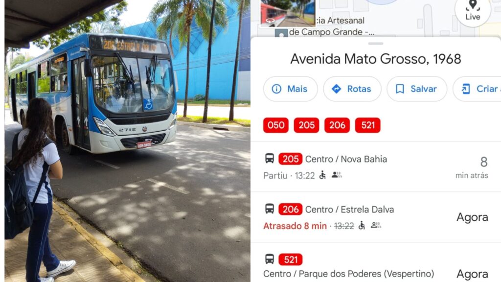 No dia em que Lívia conversou com a reportagem do Jornal Midiamax, o ônibus da linha 205 passou no ponto às 13h30, mas nos aplicativos informava que o ônibus havia passado às 13h22.
