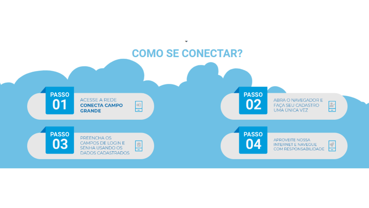 Para acessar a rede é fácil, basta realizar uma única vez um cadastro (exigência da Lei Geral de Proteção de Dados), depois escolher no aparelho de celular a rede “Conecta Campo Grande”, digitar o CPF e senha cadastrados, que logo começa a navegar. Após o cadastro, o usuário consegue acessar a