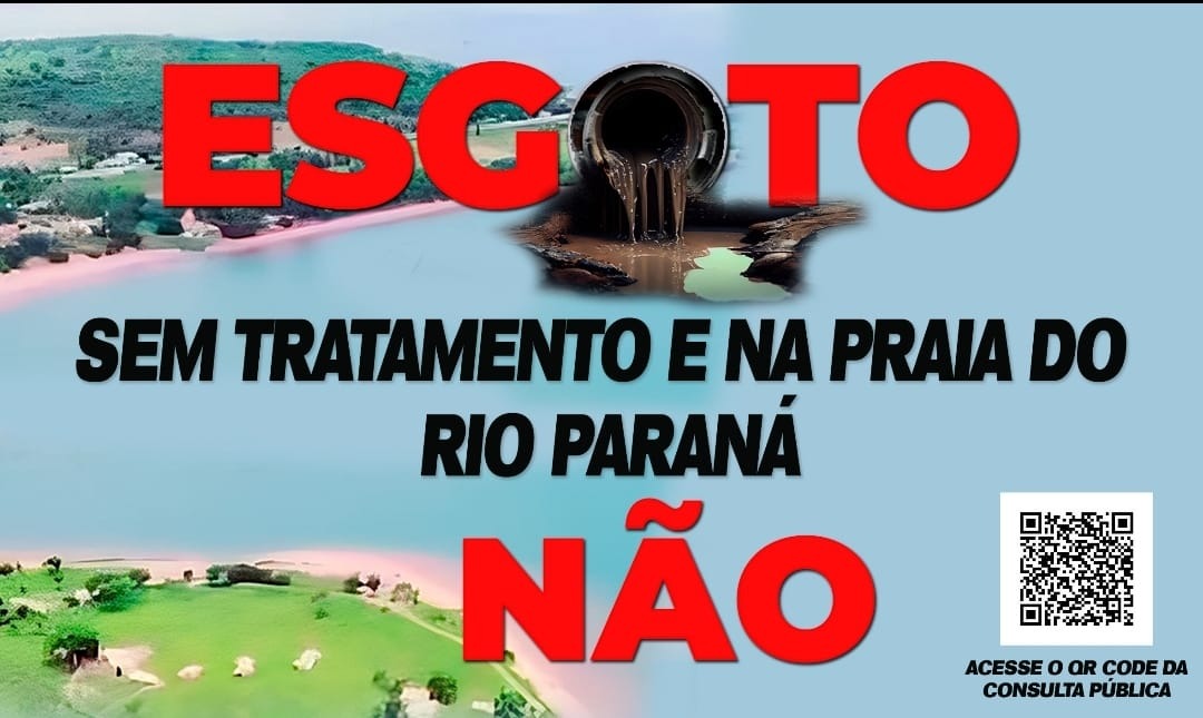 A ONG SOS Rio Paraná, que há 10 anos atua em ações contra emissão de esgoto no rio, é responsável pela campanha “Esgoto sem tratamento e na Praia do Rio Paraná, não”.