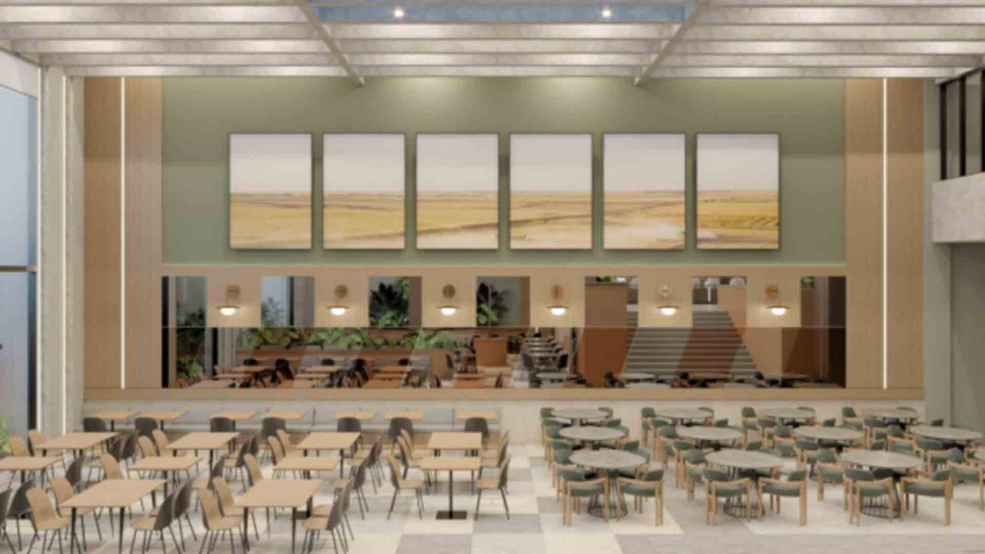 O restaurante terá espaços com divisórias entre mesas redondas e quadradas, simples e luxuosas, ambos com acesso por escadarias.