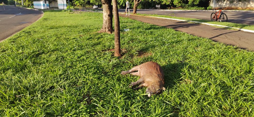 Uma capivara foi morta atropelada na Avenida Prefeito Lúdio Martins Coelho com a Rua Dona Tomásia Rondon, em Campo Grande. O animal foi encontrado na manhã desta quinta-feira (19) com diversos ferimentos pelo corpo.