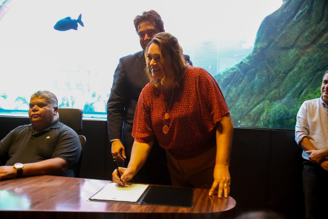 Em cerimônia marcada por lágrimas e participação em peso de movimentos sociais de reforma agrária, assinaram o termo de posse Paulo Roberto da Silva (Superintendência Regional do Incra); Marina Ricardo Nunes Viana (Coordenadora geral do escritório estadual do MDA) e Julio Cleverton dos Santos (Superintendente da Pesca e Aquicultura).