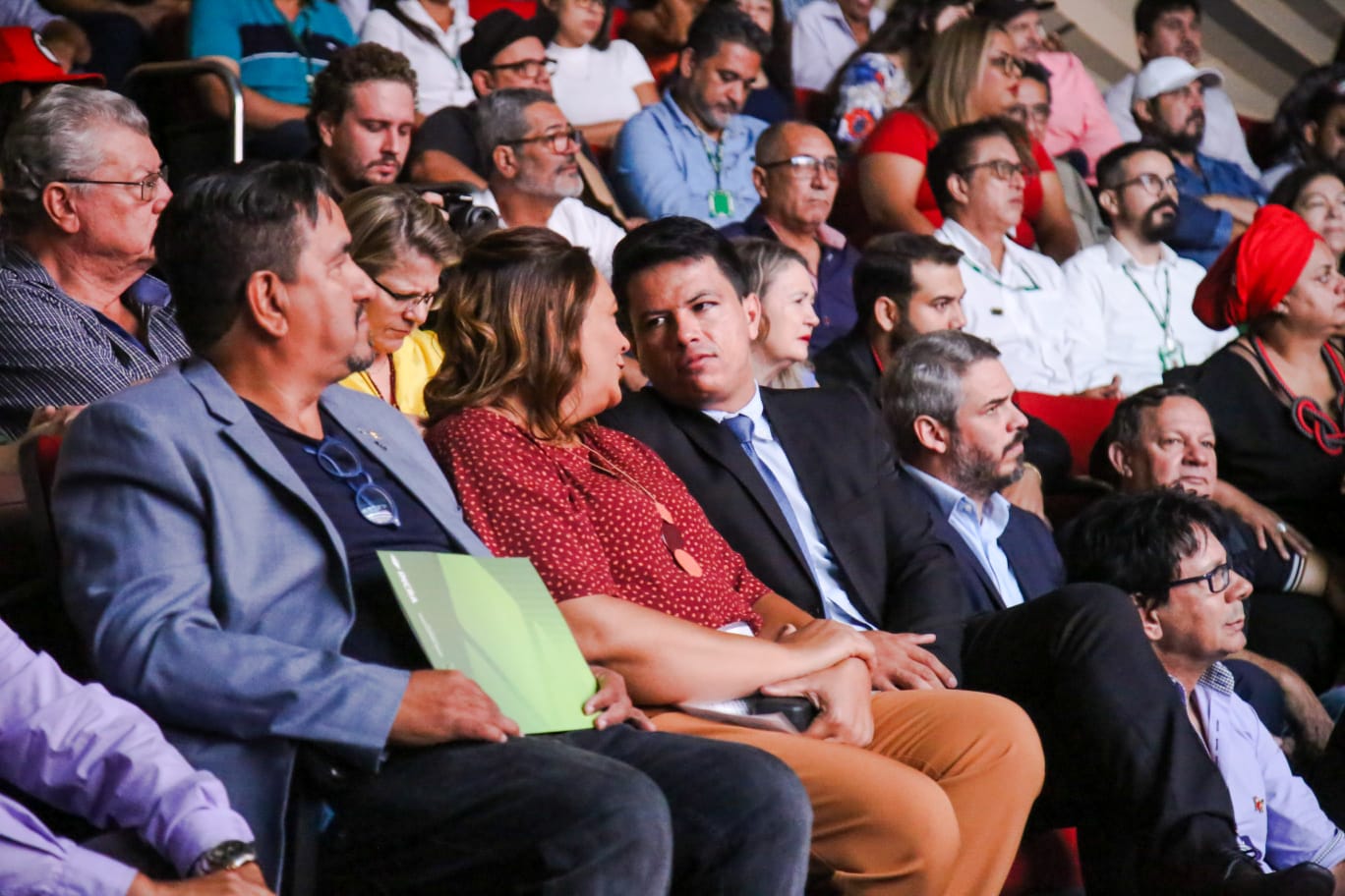 O espaço ficou lotado e pessoas ficaram em pé para acompanhar a assinatura dos termos de posse conjunta. No público estavam indígenas, militantes do MST (Movimento dos Trabalhadores Rurais Sem Terra) e do MPL (Movimento Popular de Luta), entre outros.