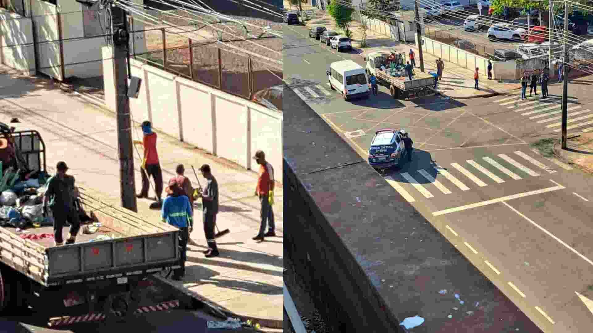 A polícia e a prefeitura realizam uma operação no entorno da antiga rodoviária, na manhã desta terça-feira (8), em Campo Grande, após usuários de drogas montarem “puxadinhos” e levarem até um vaso sanitário para a Rua Vasconcelos Fernandes, onde câmeras no entorno os flagravam fazendo necessidades fisiológicas. Há interdição neste momento e um caminhão faz a retirada de entulhos.