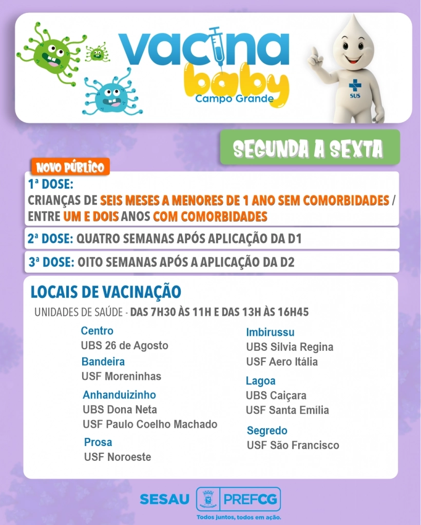 Segundo a Sesau (Secretaria Municipal de Saúde), nesta terça-feira (17), o atendimento é das 7h30 às 16h45. É preciso estar atento porque a aplicação das vacinas infantis é feita em unidades específicas.