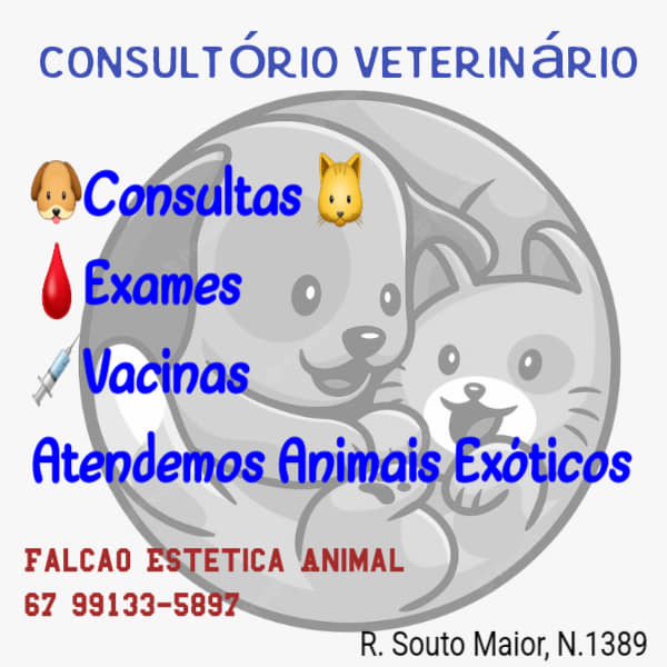 Luciana atende no Petshop Falcão Estética Animal, localizado na Av. Souto Maior, nº 1389, bairro Tijuca II. O telefone do local é (67) 9 9133-5897. Já o WhatsApp da Luciana é (67) 9 9252-4852