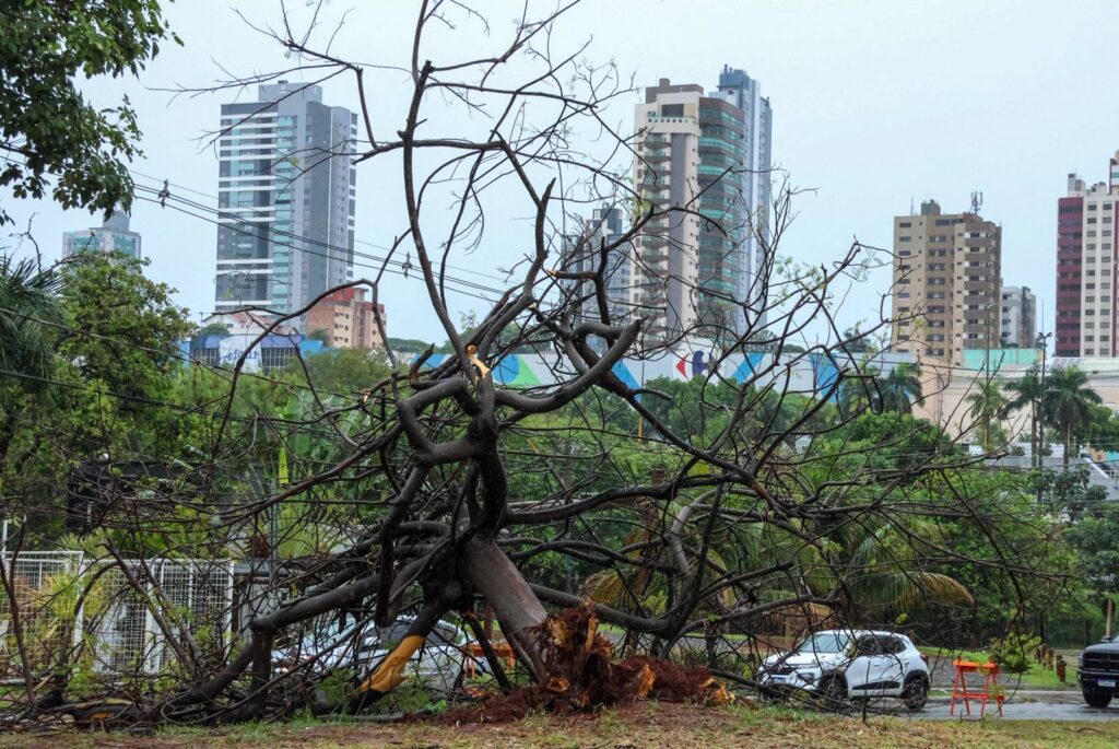 Uma árvore de grande porte amanheceu caída neste sábado (26) na Avenida Arquiteto Rubens Gil de Camilo, no bairro Chácara Cachoeira, em Campo Grande. O incidente ocorreu próximo à Praça das Águas. Ventos teriam chegado a 12 km/h durante a madruga e manhã de sábado (26).