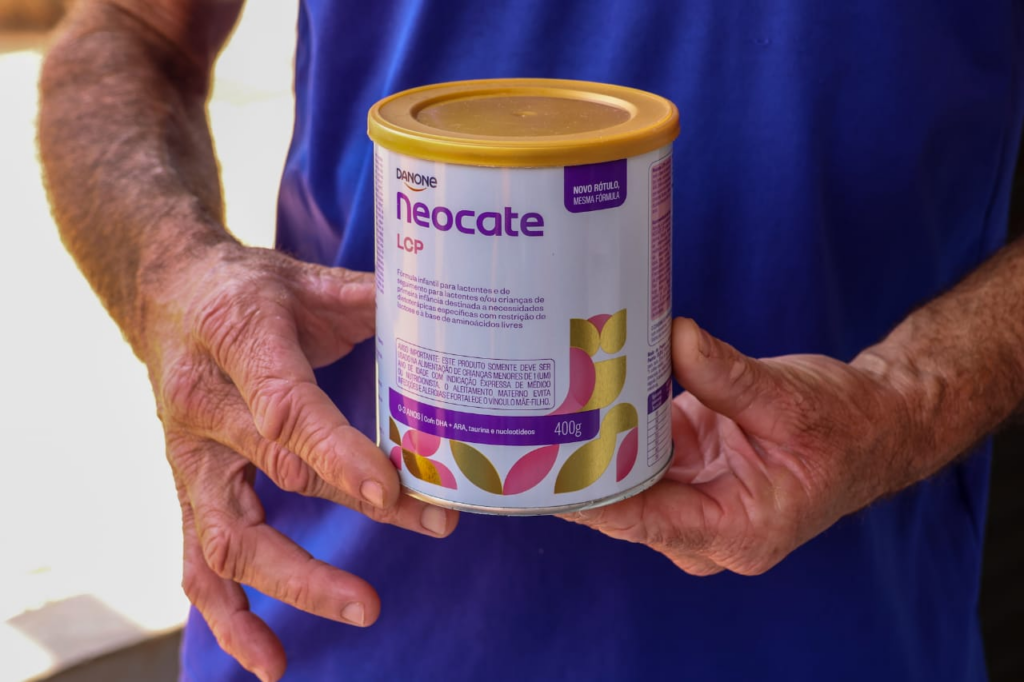 Por causa da dificuldade em se alimentar, a bebê precisa tomar um leite que chega a custar R$ 300 e dura apenas três dias. “São 17 latas por mês e o uso é contínuo. É muito caro, praticamente R$ 6 mil por mês e não temos condição”, detalha.