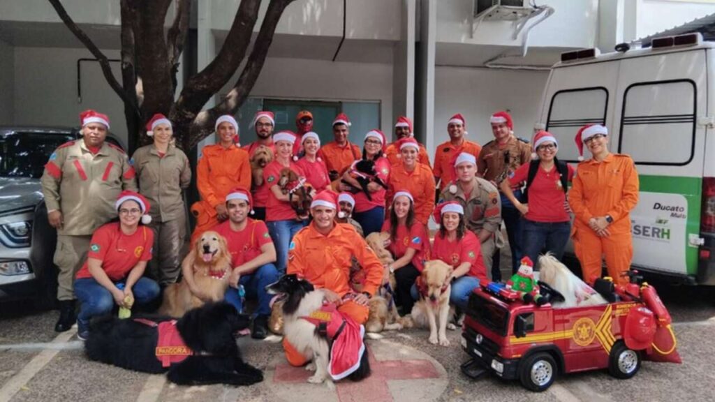 Os cães eram de variadas raças e estavam trajados com roupas natalinas, eles encantaram aqueles que estavam no Humap e foram conduzidos por militares e civis responsáveis pelo projeto.
