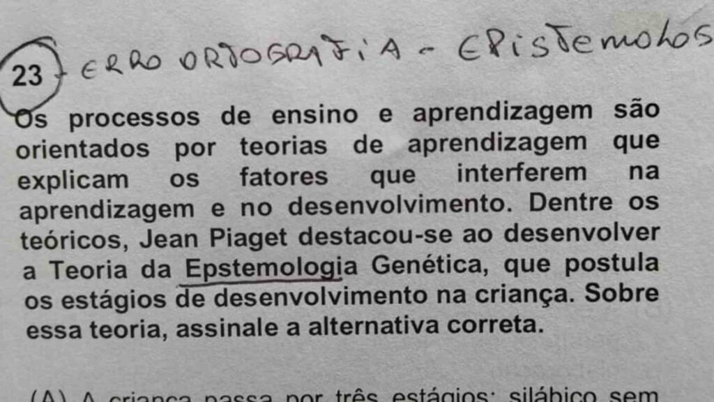 No domingo, foram aplicadas as provas objetivas com 60 questões e de redação. Os principais erros apontados pelos candidatos são na área de ortografia, como a palavra conselho escrita com “c” e epistemologia sem o “i”.