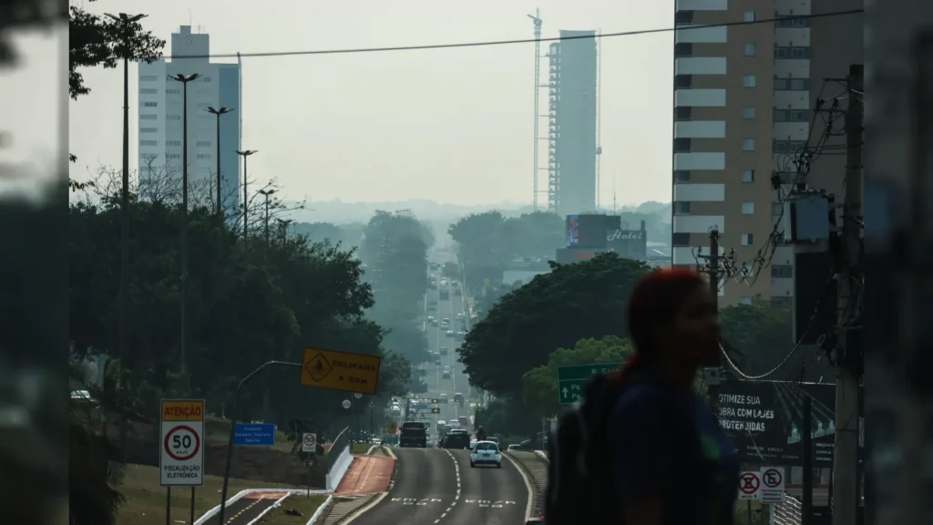 Aquela que poderia ser a solução para o clima quente e seco que o campo-grandense tem enfrentado nos últimos dias, acabou gerando um agravamento da situação. Isso porque a chuva da manhã desta sexta-feira (20) em alguns pontos da cidade foi sucedida por registros de uma névoa mista entre fumaça e poeira.