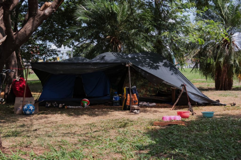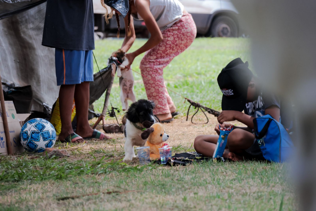 Sinai Bimari é venezuelana e há cinco dias está acampada com o marido e os quatro filhos – de 14, 12 e os gêmeos de 10 anos – na Capital. São duas barracas: uma para as crianças e a outra para o casal e os pets da família. Neste contexto, já imaginamos que a família seja mais uma integrante da migração em massa causada pela crise política no país.