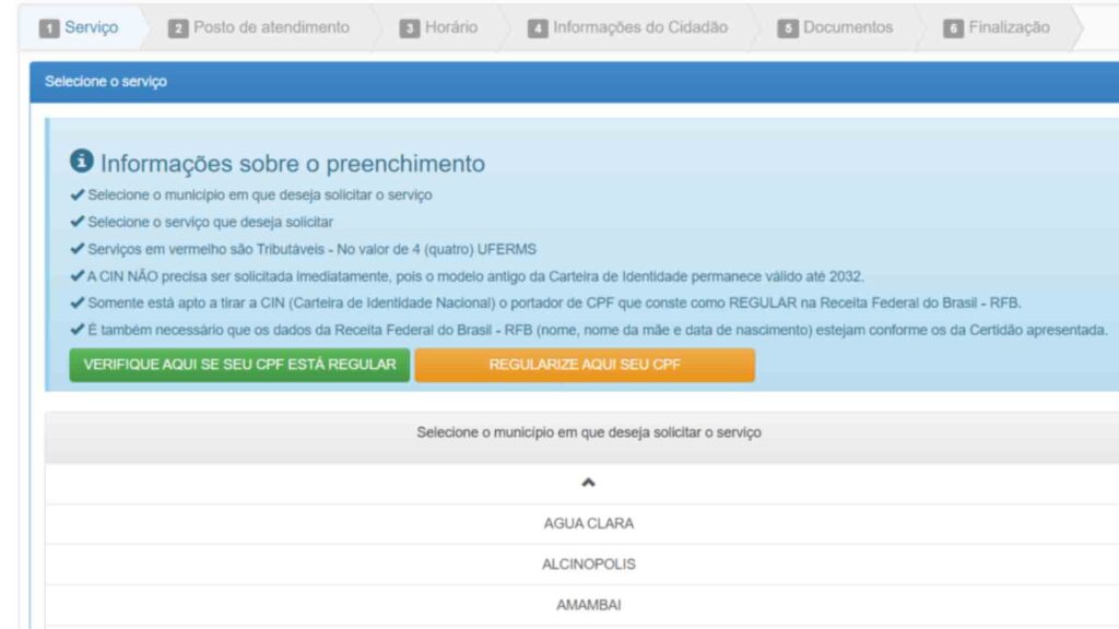 3 – Escolha o endereço do posto de identificação mais perto de você;