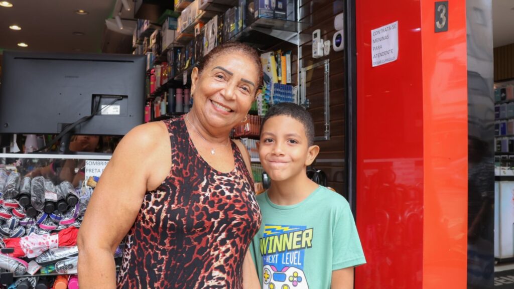 Clara comemorou que além dos dois pares de tênis que ganhou da avó, recebeu um tablet do pai e um celular. Já Marlene Correia, 73 anos, foi até a região central para passear com o neto porque o presente será uma viagem.