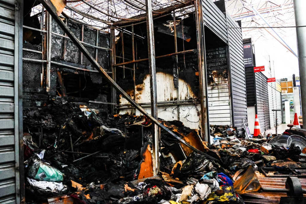 Imagens registradas pelo Jornal Midiamax mostram a destruição de toda a mercadoria e estrutura das unidades. O fogo atingiu paredes, forro e piso.