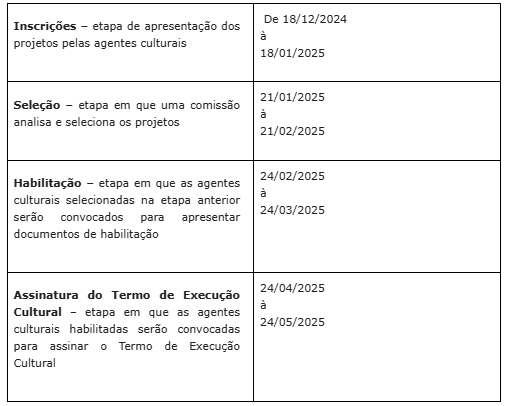 Os agentes culturais podem se inscrever nas seguintes modalidades: