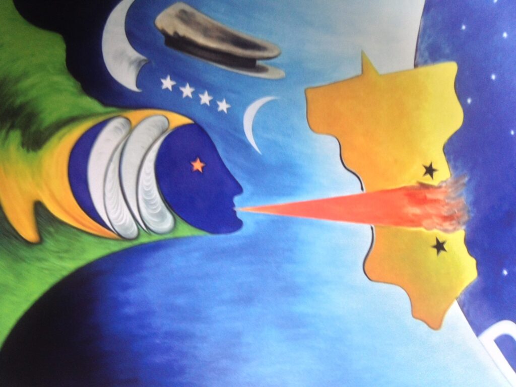 Entras tais obras, está ‘O Sopro’, que retrata a implantação do “Novo Estado”, a partir da divisão de Mato Grosso ao meio. O sopro é o que dividiria o território e as águas do Pantanal.