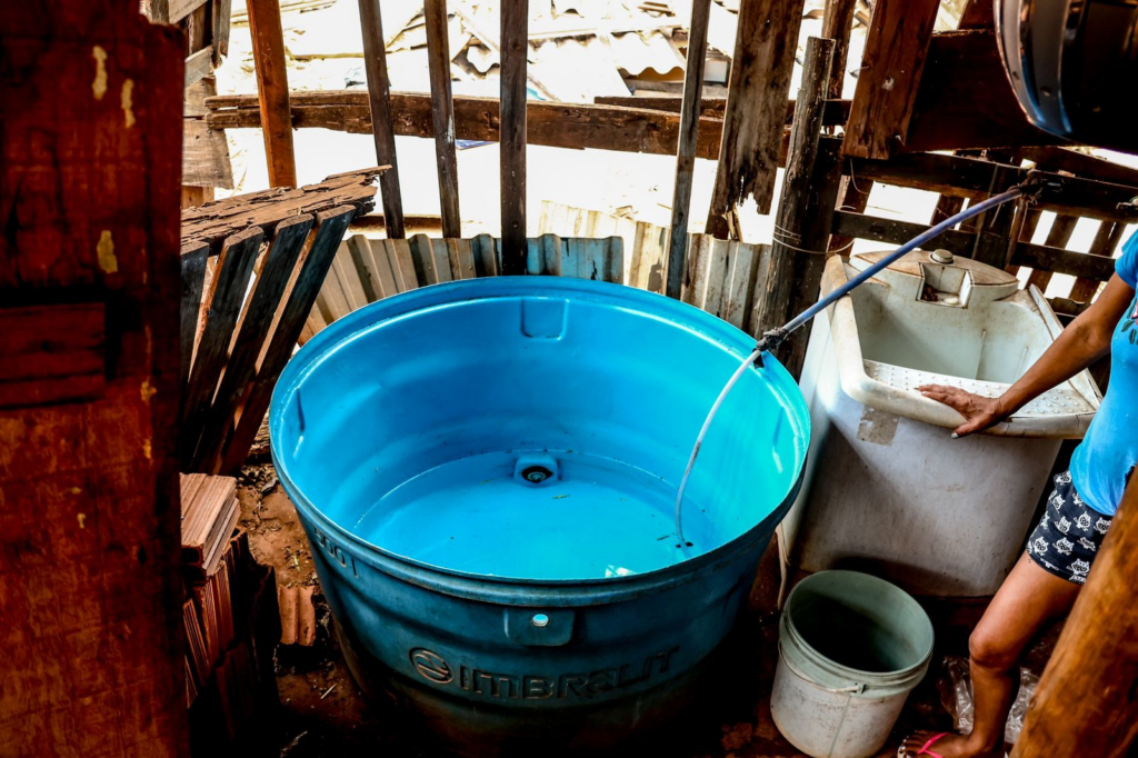 “Fazemos o que dá para tentar melhorar nossa situação aqui. Tenho ali uma caixa d’água onde armazeno água para dias em que ficamos sem abastecimento. É ela que bebemos, é com ela que limpamos e cozinhamos. Sempre dou um pouco do que armazeno para os vizinhos porque aqui é assim, somos um pelo outro. Mas tem dia que é difícil, porque acaba água e energia. E aí, a gente faz o quê?”, indaga outra moradora.