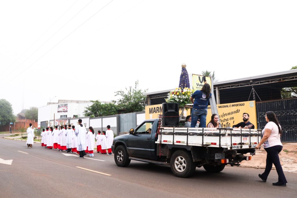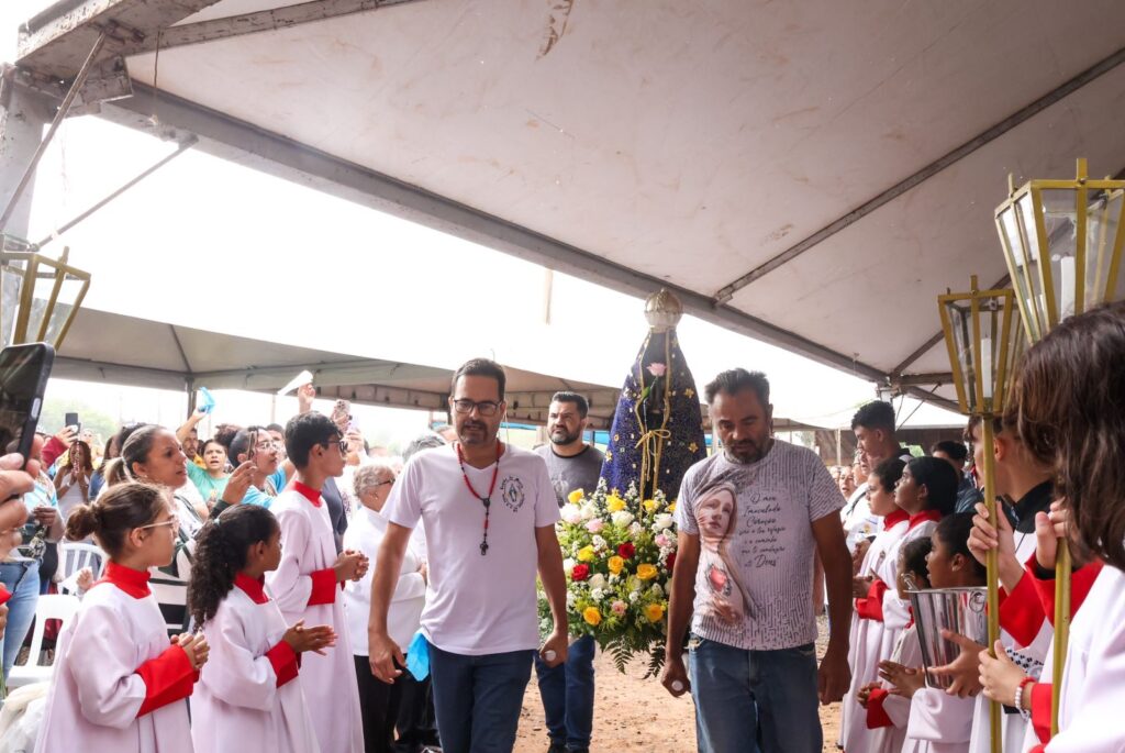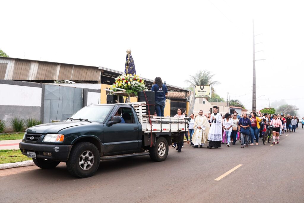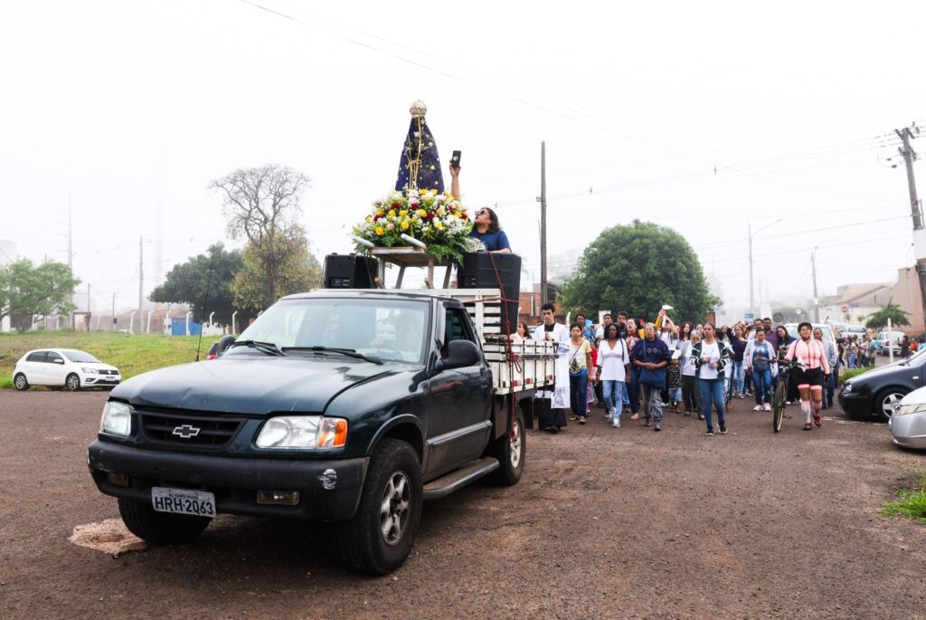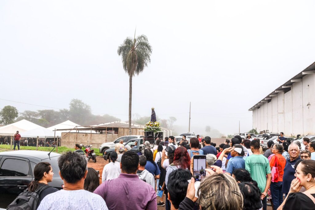 Devotos de diversas regiões de Campo Grande se reuniram na manhã deste sábado (12) na Comunidade Nossa Senhora Aparecida, no bairro Mata do Jacinto, em homenagem à Padroeira do Brasil. A peregrinação em meio ao tempo nublado, missa e cavalgada reuniram cerca de mil fiéis.