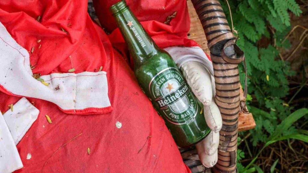 Um par de olhos feitos de botão preto em uma rua do bairro Monte Castelo “encara” o trânsito de carros e pedestres que lhe devolve um olhar curioso. Quem passa pela rua íngreme não resiste a dar uma olhadinha em um boneco de Papai Noel abandonado em uma cadeira segurando uma cerveja Heineken em uma das mãos.