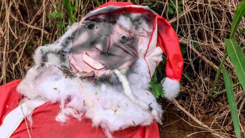 São muitas as perguntas que rondam o Papai Noel abandonado no bairro Monte Castelo. Quem o colocou lá? Qual o motivo? Por que ele segura uma cerveja e fuma? Algum evento com o Papai Noel marcou uma família que decidiu largá-lo na rua? Seria só uma brincadeira?