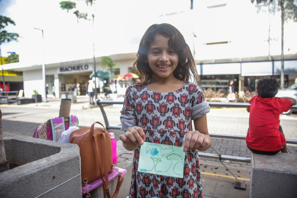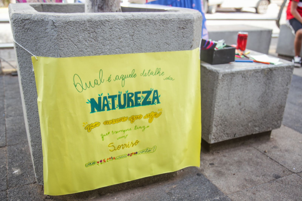 “Qual é aquele detalhe da natureza, por menor que seja, que sempre traz um sorriso ao seu rosto?”. É com essa pergunta que quatro acadêmicas de pedagogia – 6° e 7° semestre – da UFMS (Universidade Federal de Mato Grosso do Sul) abordam os campo-grandenses na Rua 14 de Julho. Embora simples, o projeto de extensão busca levar reflexão sobre o comportamento humano e a capacidade de interpretação.