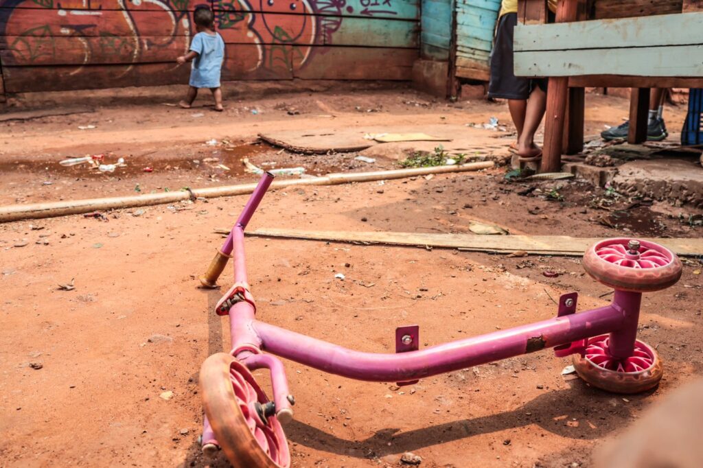 Mas, a vida não é fácil para quem vive em uma favela. Nem mesmo para as crianças. Zeomara conta que sua maior preocupação é com a saúde do filho, que fica exposto às vulnerabilidades do lugar. Como o pequeno tem bronquite e problemas respiratórios, as idas às unidades de saúde são frequentes devido ao tempo seco, a exposição a fumaça e a ausência de saneamento adequado.