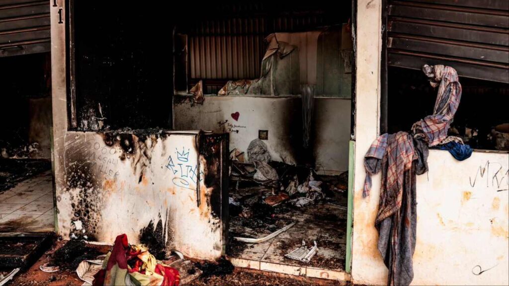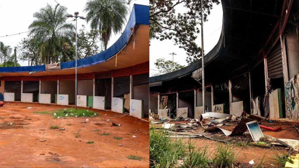 Um quiosque da Praça dos Imigrantes foi incendiado na tarde segunda-feira (18), no Centro de Campo Grande. O espaço cultural está com obras paradas após a rescisão do contrato com a empresa responsável pela revitalização. A praça tinha previsão de ser entregue para as atividades de artesãos e agendas culturais em novembro de 2023.