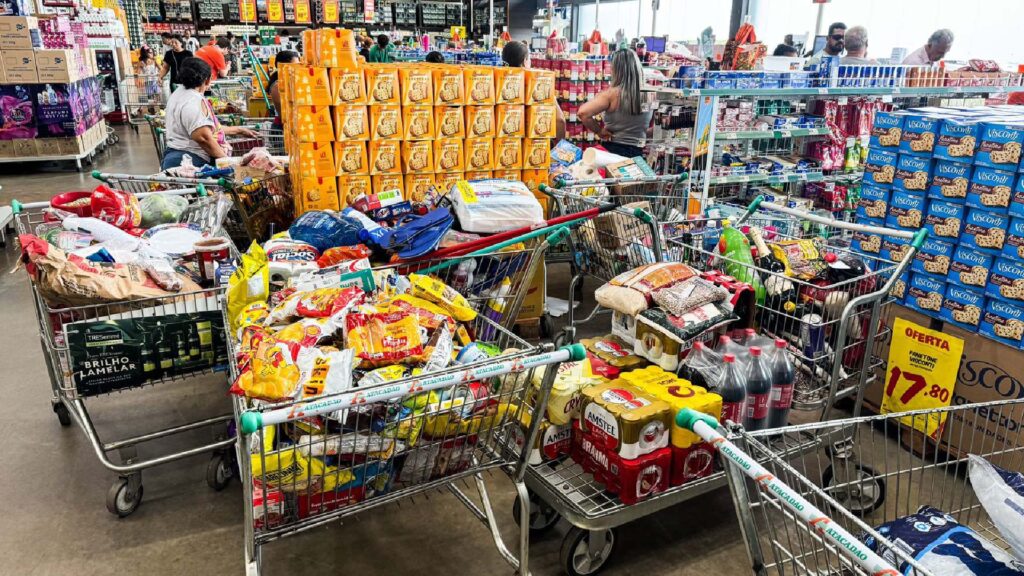 Quem deixou para fazer as compras da ceia de Natal nesta terça-feira (24), véspera da comemoração, deve se preparar para enfrentar filas longas e supermercados lotados em Campo Grande.
